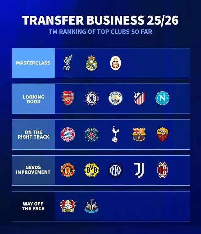 德甲夏季转会评级,加拉塔萨雷脱颖而出